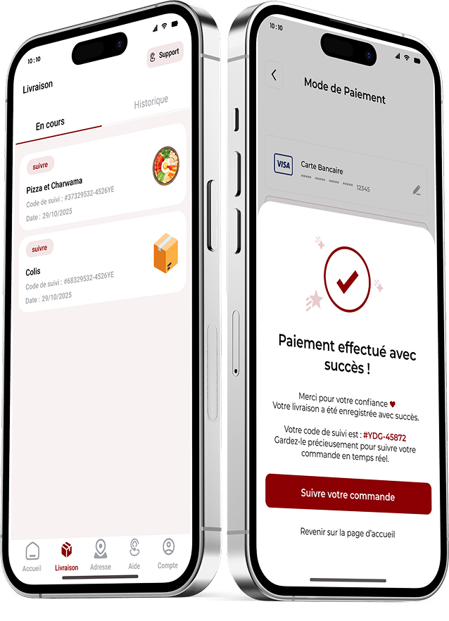 Commandez, suivez et recevez vos colis en toute simplicité. Avec Youdégo, chaque livraison est rapide, fiable et sans stress.