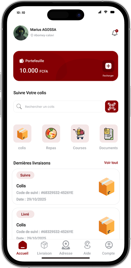 Suivez votre colis ou vos courses en temps réel et notez votre expérience après la livraison.